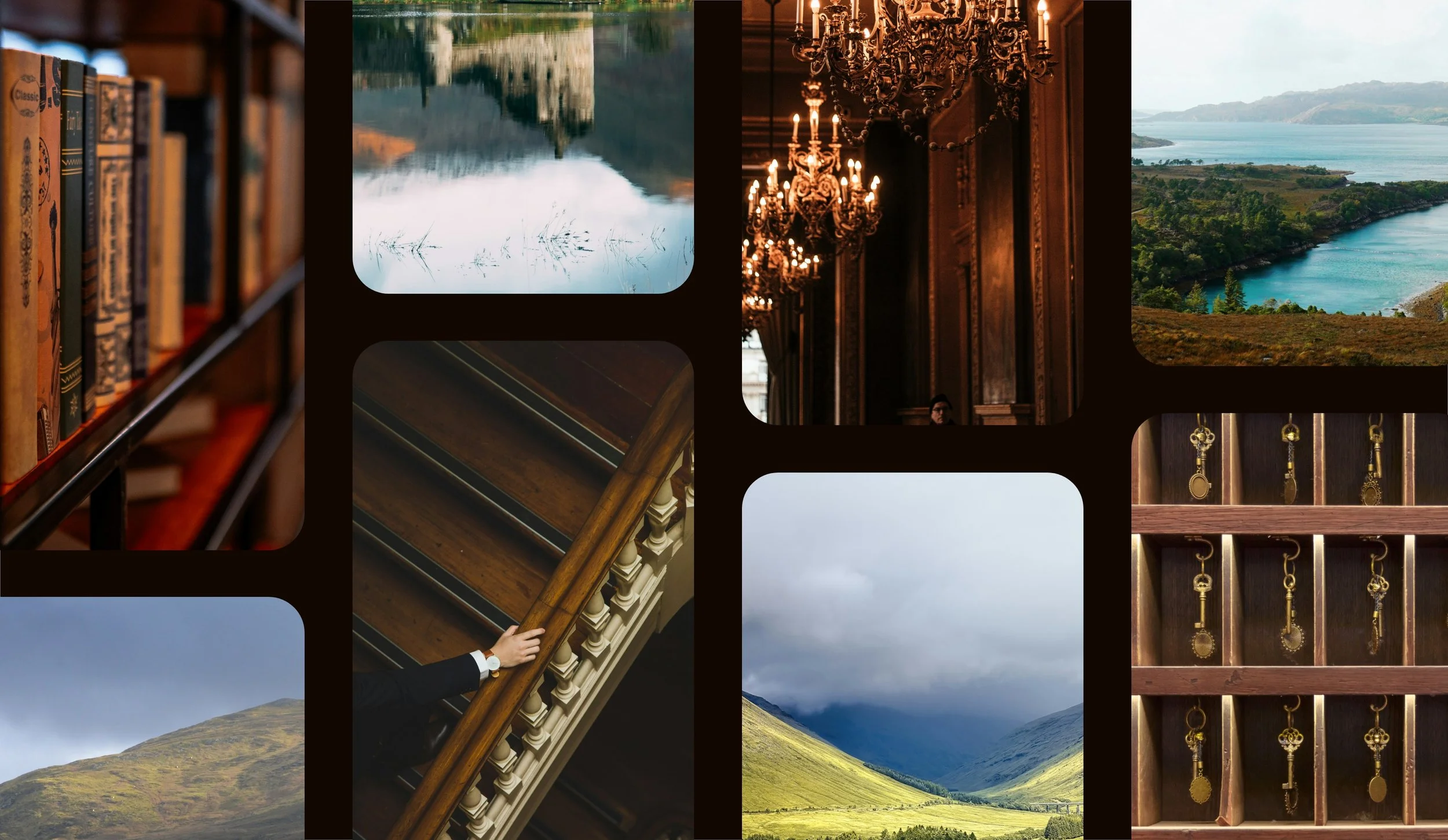 The visual language leans into timeless sophistication, drawing inspiration from classic 1920s design while remaining adaptable for modern luxury. A palette of rich, earthy tones mirrors the Highland landscape, while elegant typography and refined detailing bring a sense of understated grandeur.